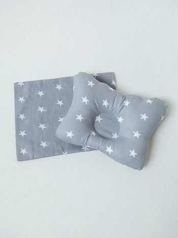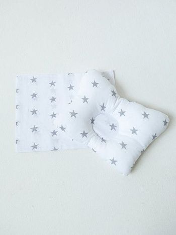 Комплект подушка "МАЛЮТКА" + 2 наволочки звездочки серые на белом