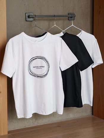 Набор футболок (3 шт.) белая, черная и белая с логотипом "мотаю нервы"