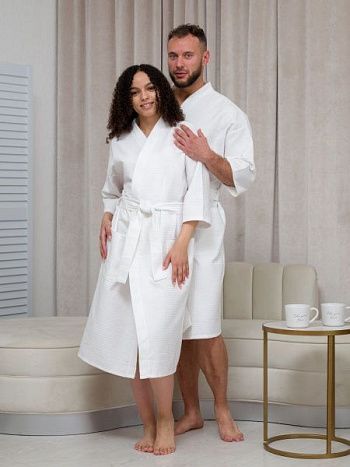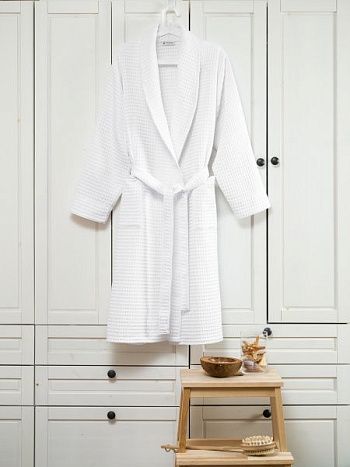 Халат женский вафельный PandaHug Оrnella белый шаль