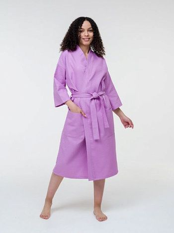 Халат женский вафельный PandaHug Оrnella сиреневый с капюшоном