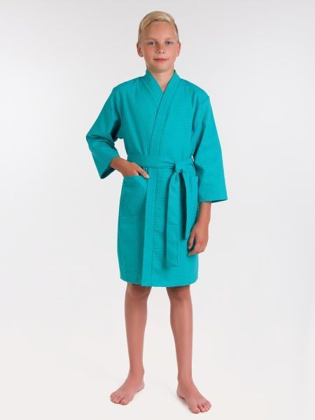 Халат вафельный детский изумрудный