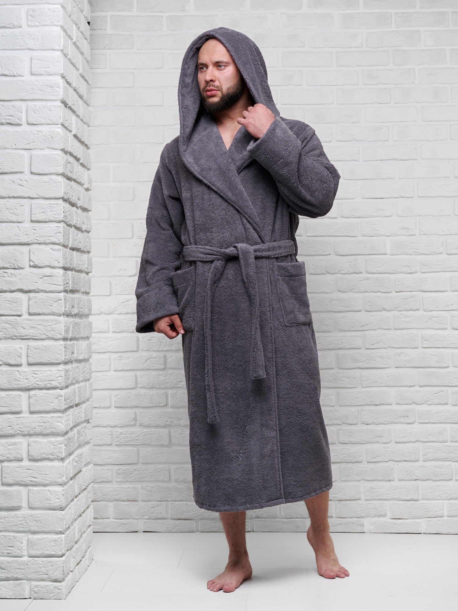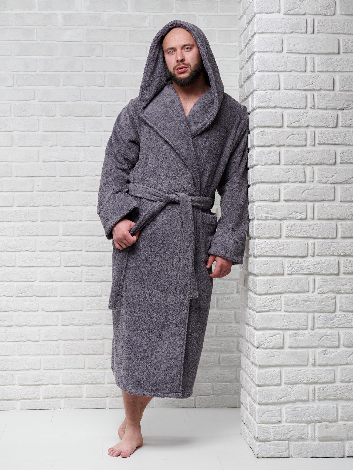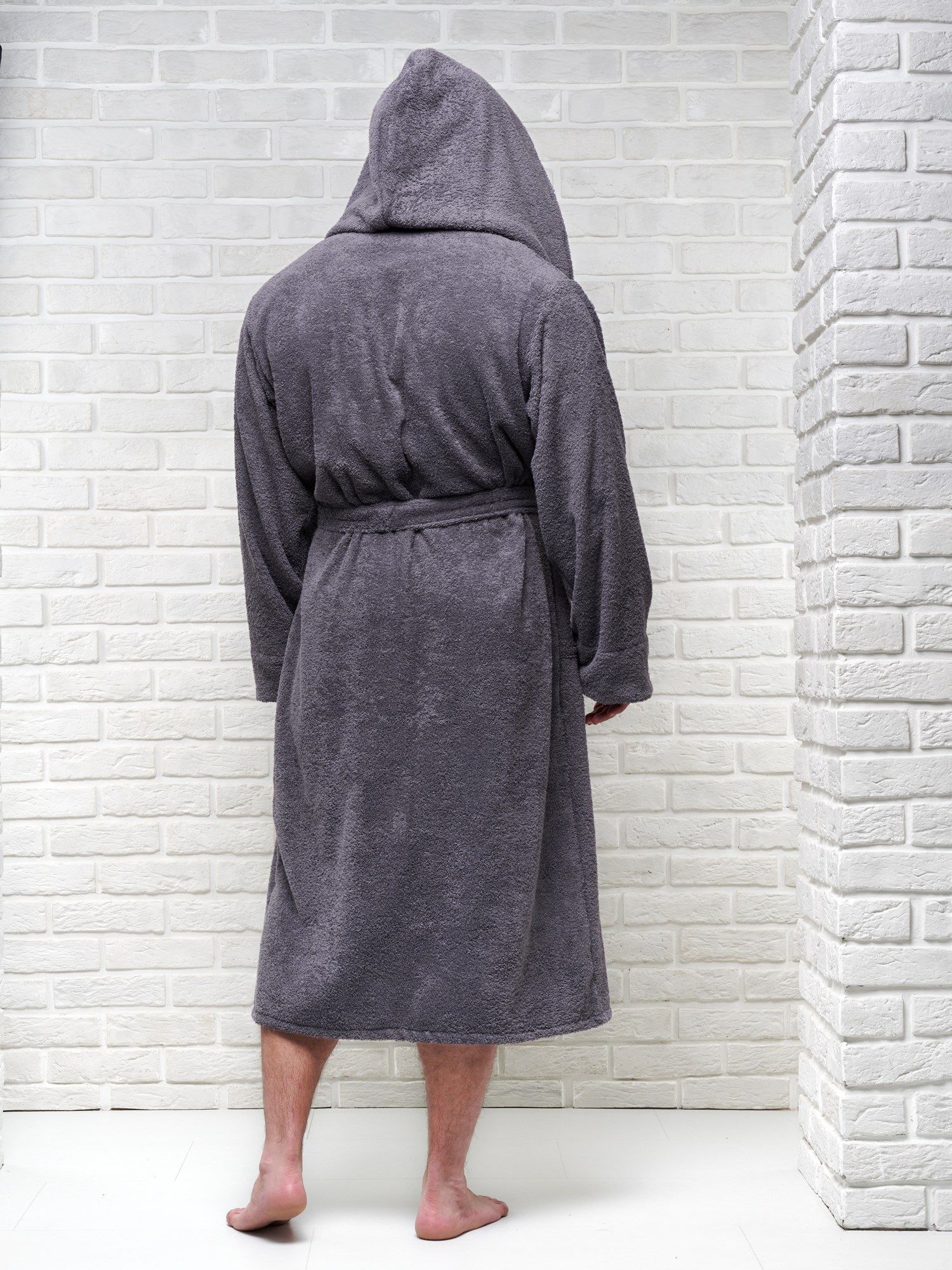 Халат мужской махровый PandaHug с капюшоном, темно-серый