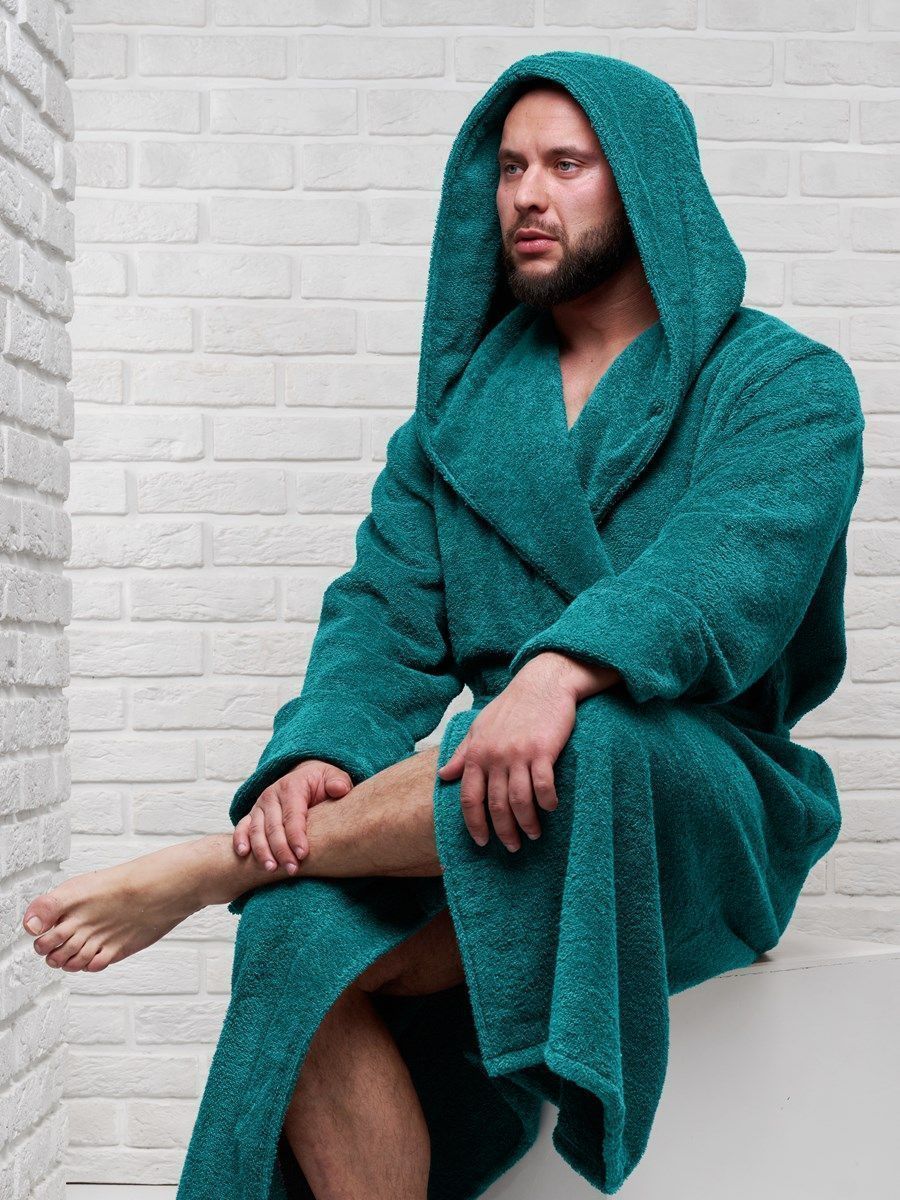 Халат мужской махровый PandaHug с капюшоном, изумруд