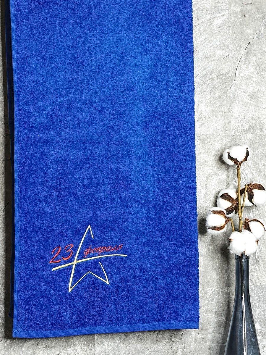 Полотенце с вышивкой 70*140 "23 февраля" васильковый