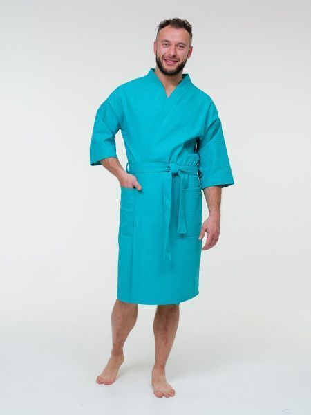 Халат достаточно легкий, а мелкие квадратики вафельной ткани создают воздушную подушку между халатом и кожей, за счет чего сохраняется комфортная температура тела, а после водных процедур кожа быстрее высыхает.