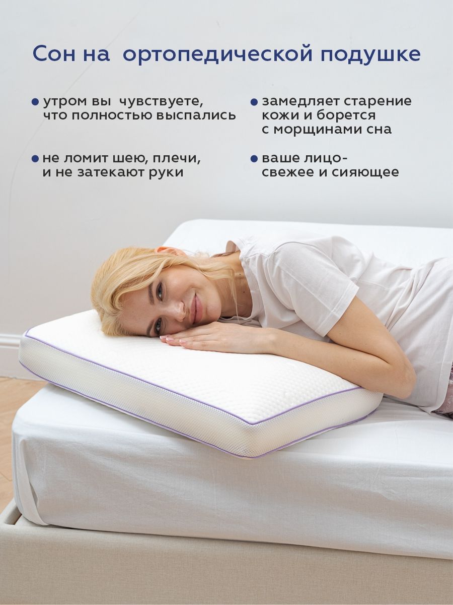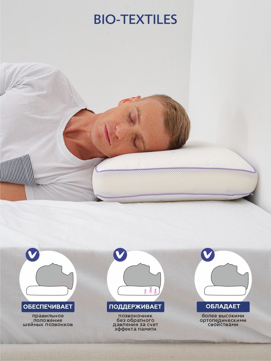 Материал подушки – дробленый вязкоэластичный пенополиуретан с эффектом «памяти», обладающий особыми физико-механическими свойствами. Классическая прямоугольная форма наперника данной подушки является универсальной. Долговечность и безопасность материала гарантирует продолжительный срок службы.  Мягкая и приятная, но в тоже время упругая подушка  аккуратно подстроится под изгибы тела, размягчаясь от тепла, окажет ортопедический эффект. Создавая ощущение невесомости, подушка бережно поддержит голову и шею в максимально комфортном положении. Сон на такой подушке поможет избежать бессонницы, головных болей и дискомфорта в шейном отделе.