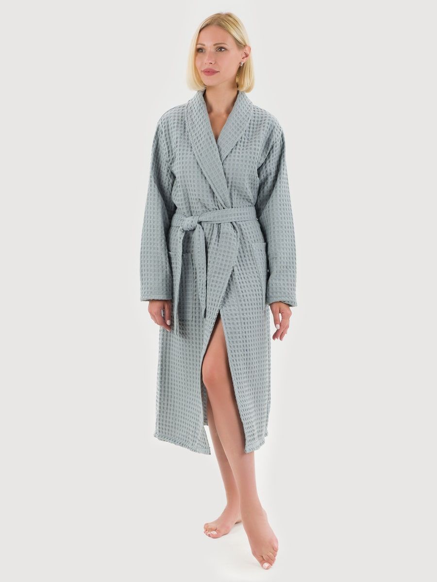Халат женский вафельный PandaHug Оrnella серый шаль