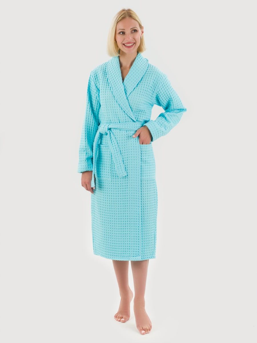 Халат женский вафельный PandaHug Оrnella голубой шаль