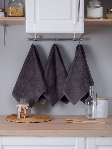 Набор махровых полотенец 3 шт (40*70) темно-серый
