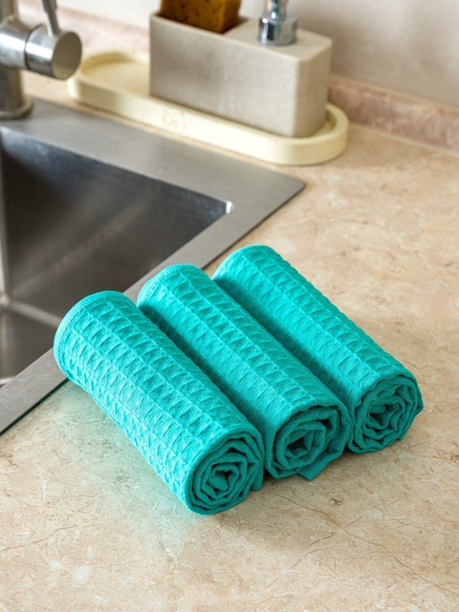 Набор вафельных полотенец 3 шт (30*60) зеленые