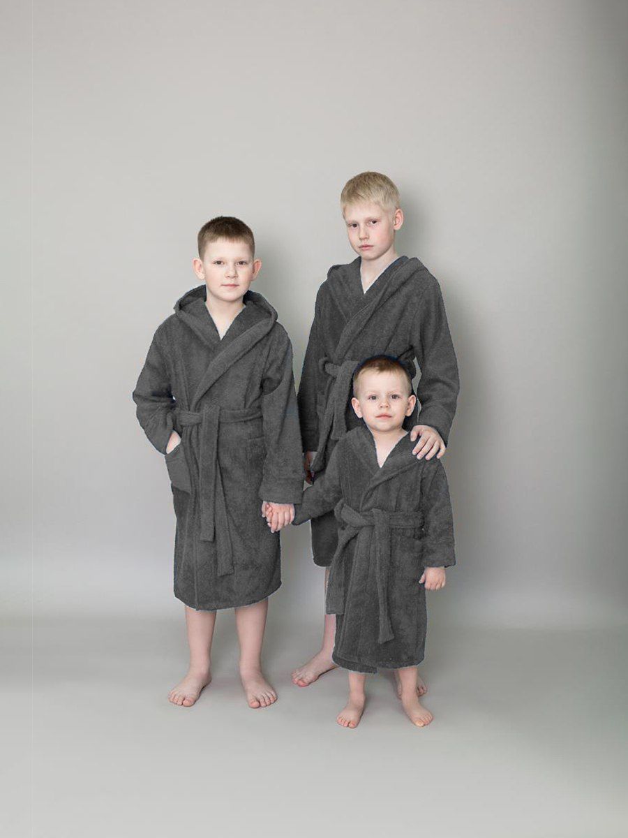 Халат махровый детский с капюшоном темно-серый