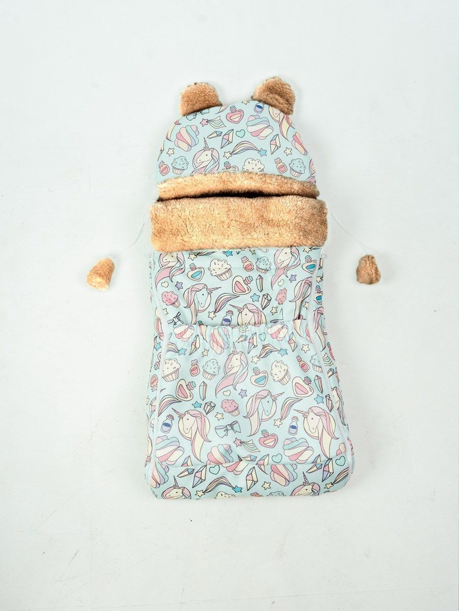 Конверт детский меховой на выписку "Единороги" 82*42 (до 6 мес), 100*46 (до 1 года)
