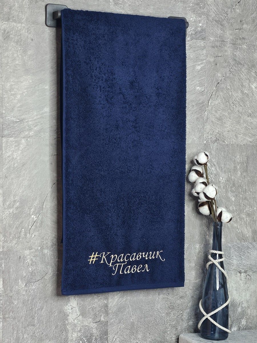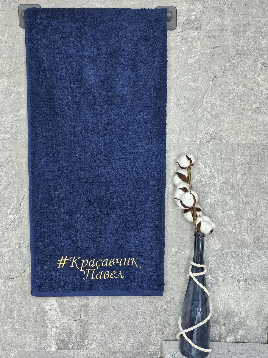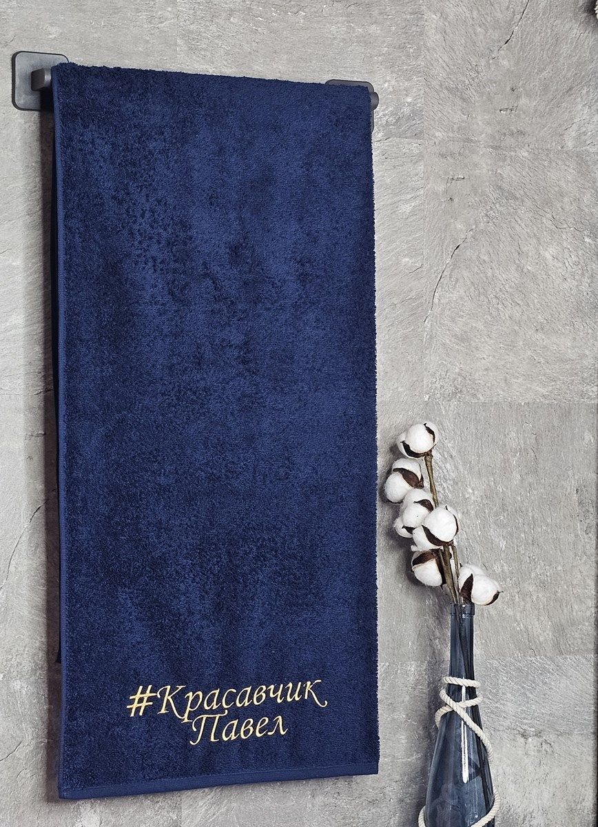 Полотенце с вышивкой 70*140 "красавчик" Павел темно-синее