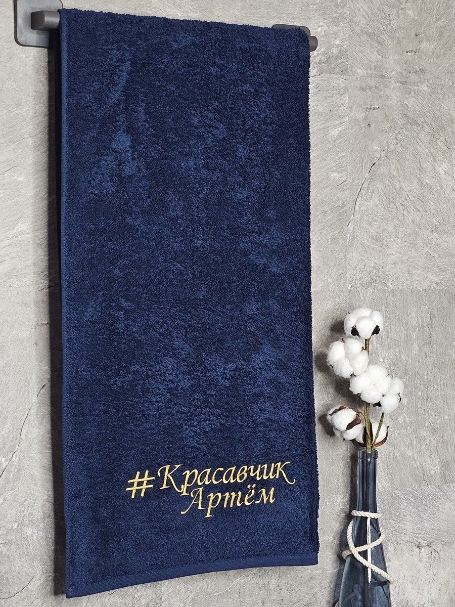 Полотенце с вышивкой 70*140 "красавчик" Артем темно-синее