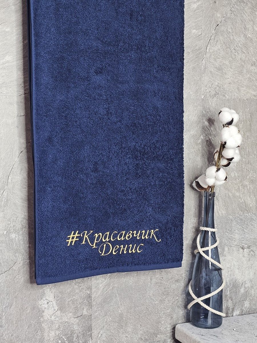 Полотенце с вышивкой 70*140 "красавчик" Денис темно-синее