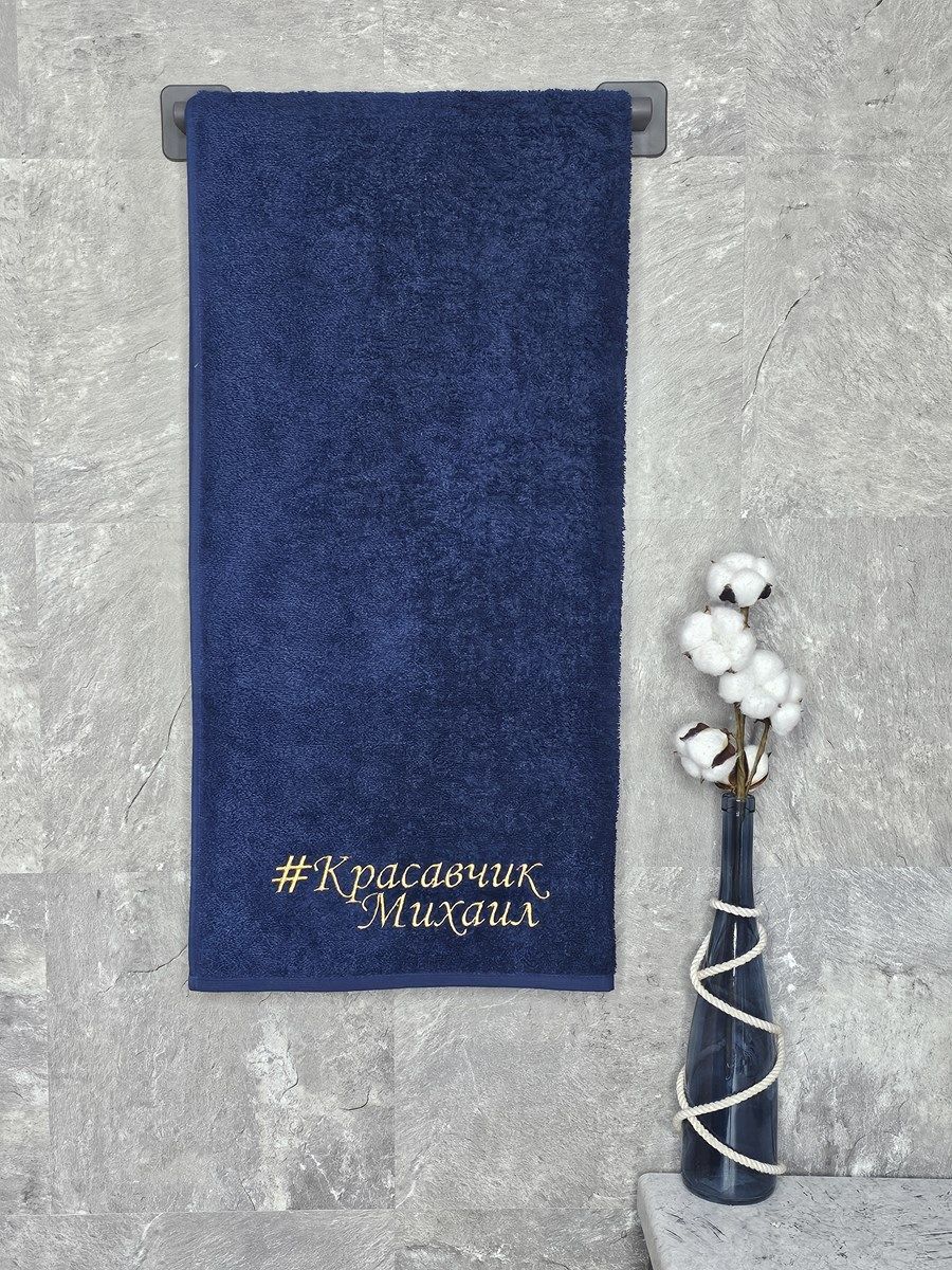 Полотенце с вышивкой 70*140 "красавчик" Михаил темно-синее