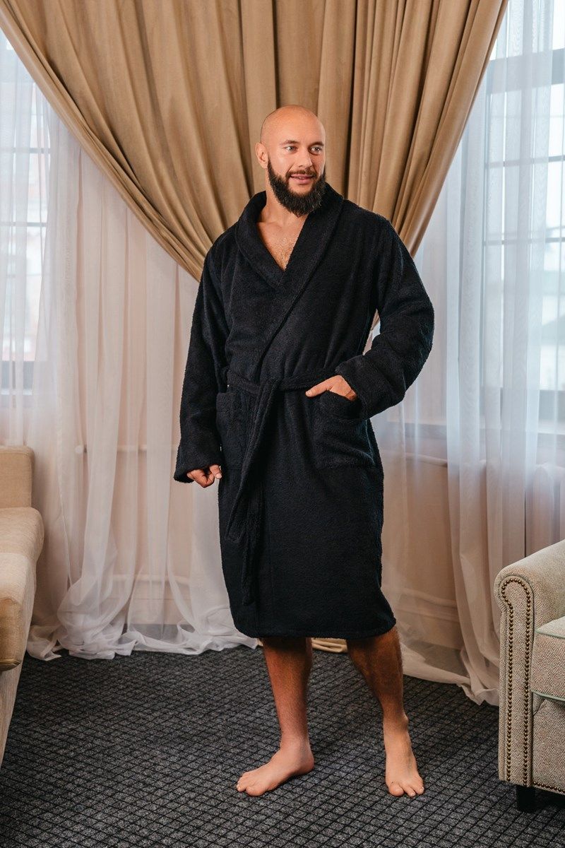 Халат махровый мужской черный