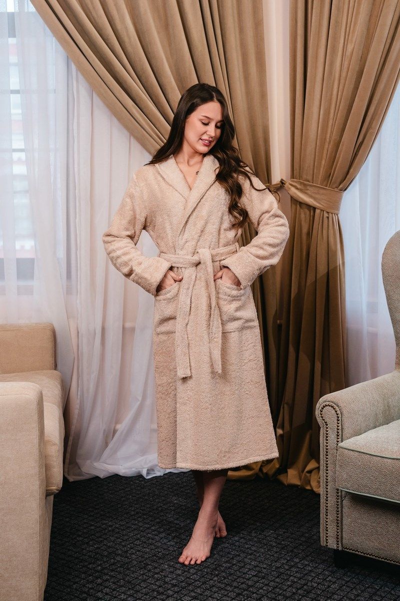 Халат махровый женский бежевый